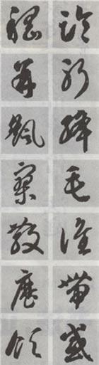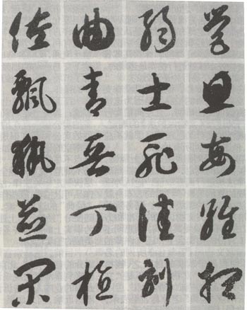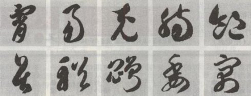 王羲之在《题卫夫人〈笔阵图〉后》中言:“意在笔前,然后作字。”作草尤需如此。下笔前应预想各部分的空间比例,然后落笔。如“