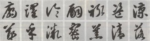 (2)纵式。如“清”字上点采用单点的写法,下两点一笔写成并顺势提出与下一笔呼应。“落”字中左下三点一笔写成,由轻渐重,简约而凝练。