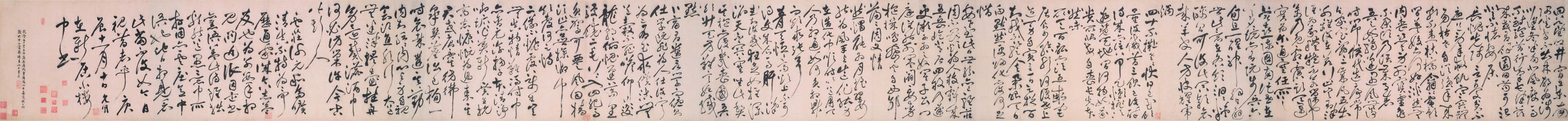 祝允明《自书诗卷》 纸本草书,47.3×321.3cm 正德十五年(公元1520年) 上海博物馆藏