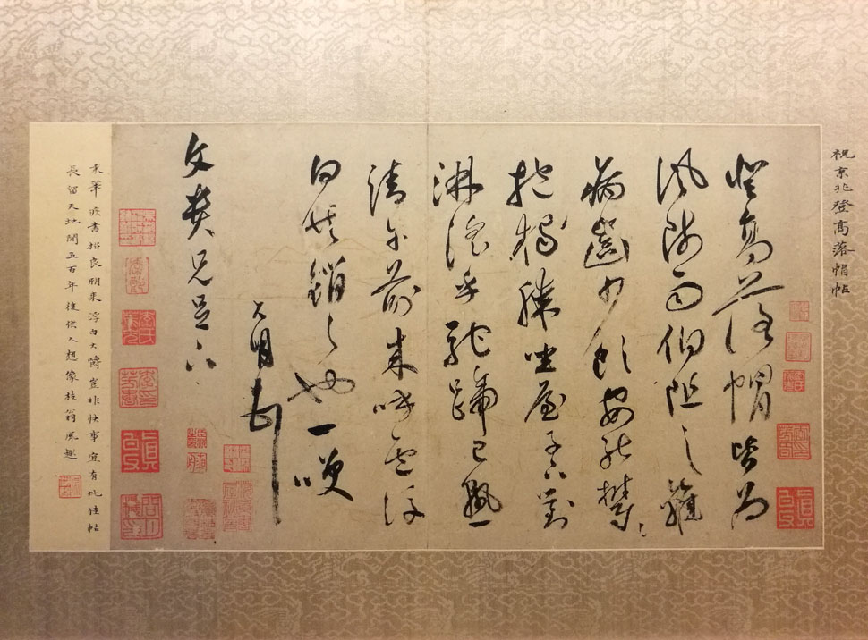 说明:此札见祝允明《怀星堂集》卷十三,题為《九日请客》“登高落帽,皆為风师雨伯阻之,虽病齿少饮,安能鬱鬱独抱膝坐屋子下对淋淫者乎?驼蹄已熟,请午前来,呼卢浮白共销之也。”文中多一“者”字,而缺少最后“一笑。允明顿首文贵兄足下”。又汪砢玉《珊瑚网》卷十八《国朝名公手牘》著录為: “登高落帽,皆為风师雨伯阻之,虽病后少饮,安能鬱鬱独抱膝坐屋子下对淋漓者乎?驼蹄已熟,请午前来,呼卢浮白共销之也。允明。梦椿仁兄契家。”出入稍多,如“病齿”作“病后”,“淋淫”作“淋漓”,前者是转录的紕漏,后者则是应是释读草书的失误。