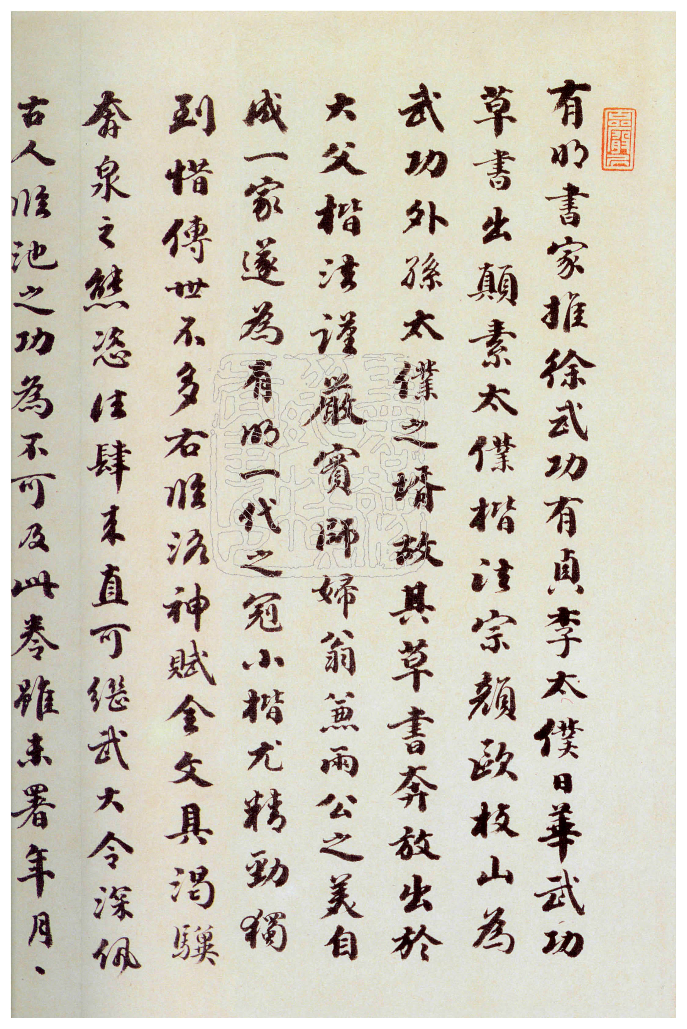 间,淳厚典雅,参以赵孟頫,然变化多致;其行笔