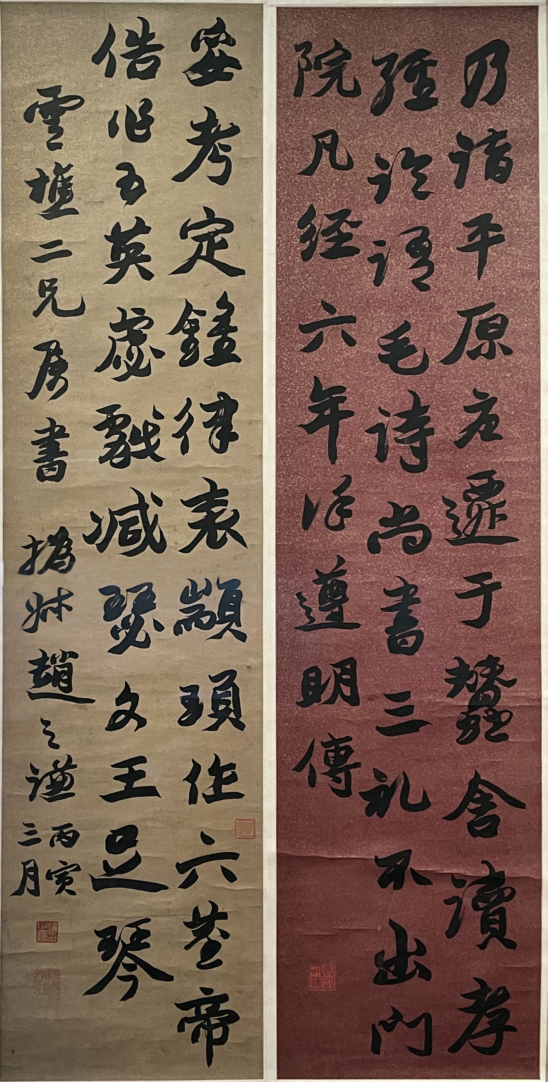 赵之谦《行书节录北史四条屏》123cm×29cm×4 1866年 君匋艺术馆藏 释文: 款识:雲樵二兄属书,撝叔赵之谦。丙寅三月。 钤印:赵之谦印(白)、汉后隋前有此人(朱) 【资料来源】《朗姿玉畅——赵之谦特展 》(浙江美术馆 2023.12.5-2024.3.3)