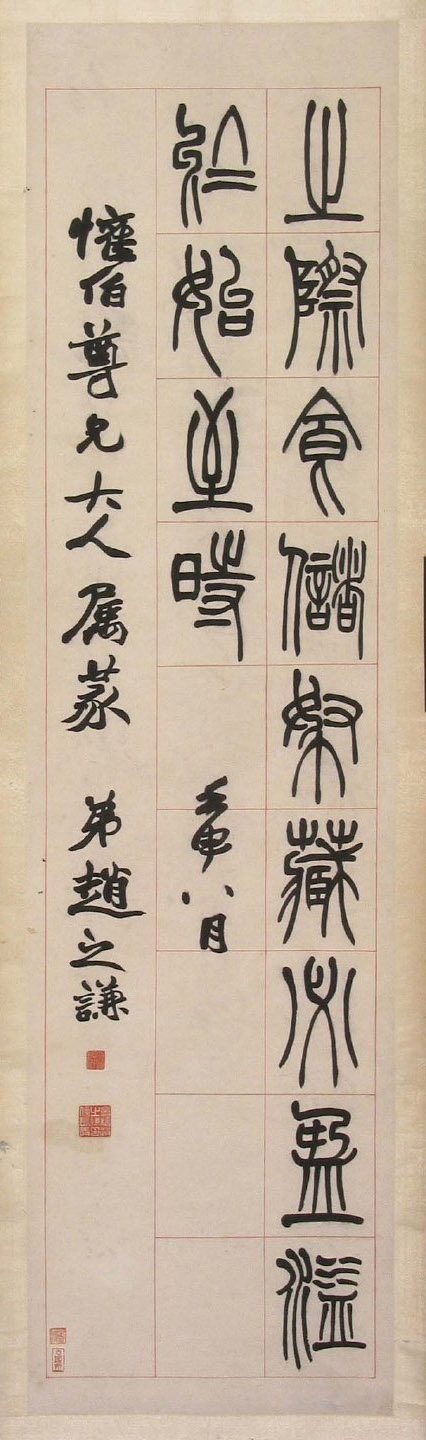 款识:壬申八月,欢伯尊兄大人属篆,弟赵之谦。