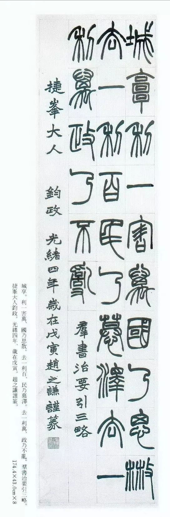 款识:羣书治要引三略,捷峯大人钧政。光绪四年,岁在戊寅,赵之谦谨篆。