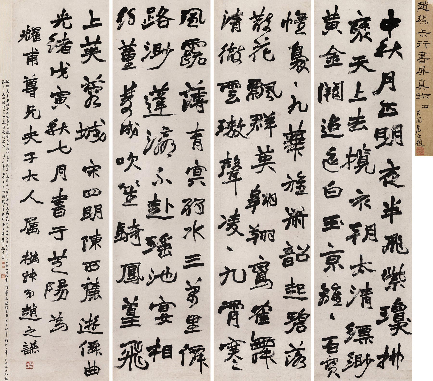 赵之谦《行书中秋诗四条屏》 纸本 145×37.5cm×4 1878年