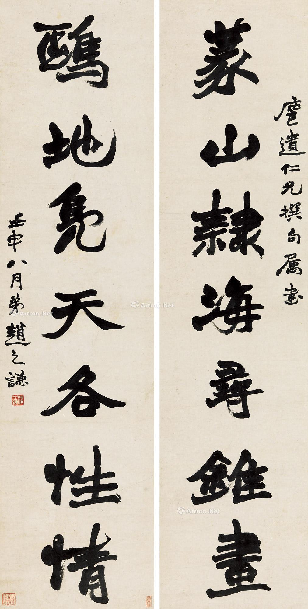 赵之谦《行书篆山鸥地七言联》立轴 纸本 124×30cm×2 1872年 中国嘉德2015春季拍卖会