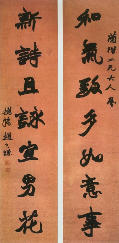 楷书魏碑七言联 纸本,立轴 128×30厘米