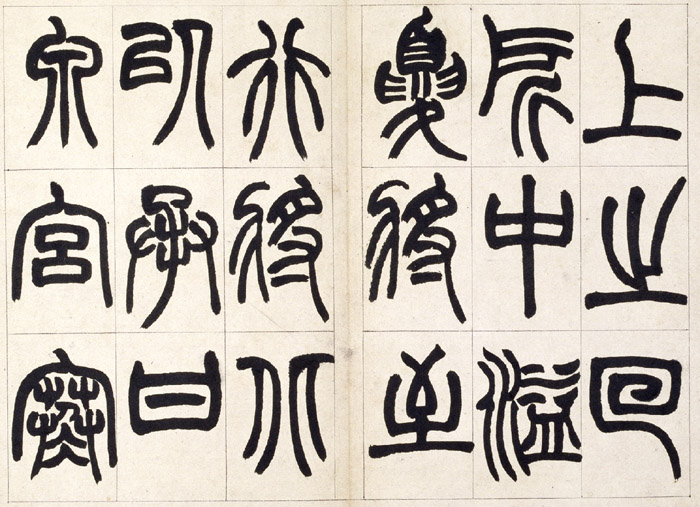 《篆书铙歌》册,纵32.5cm,横36.8cm。1864年 北京故宫博物院藏