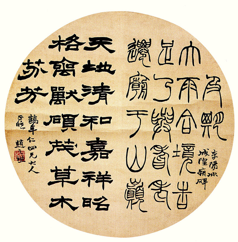 赵之谦《为鹤年篆隶二体团扇》绢本 直径25cm 约同治八年(1868) 日本戒斋藏