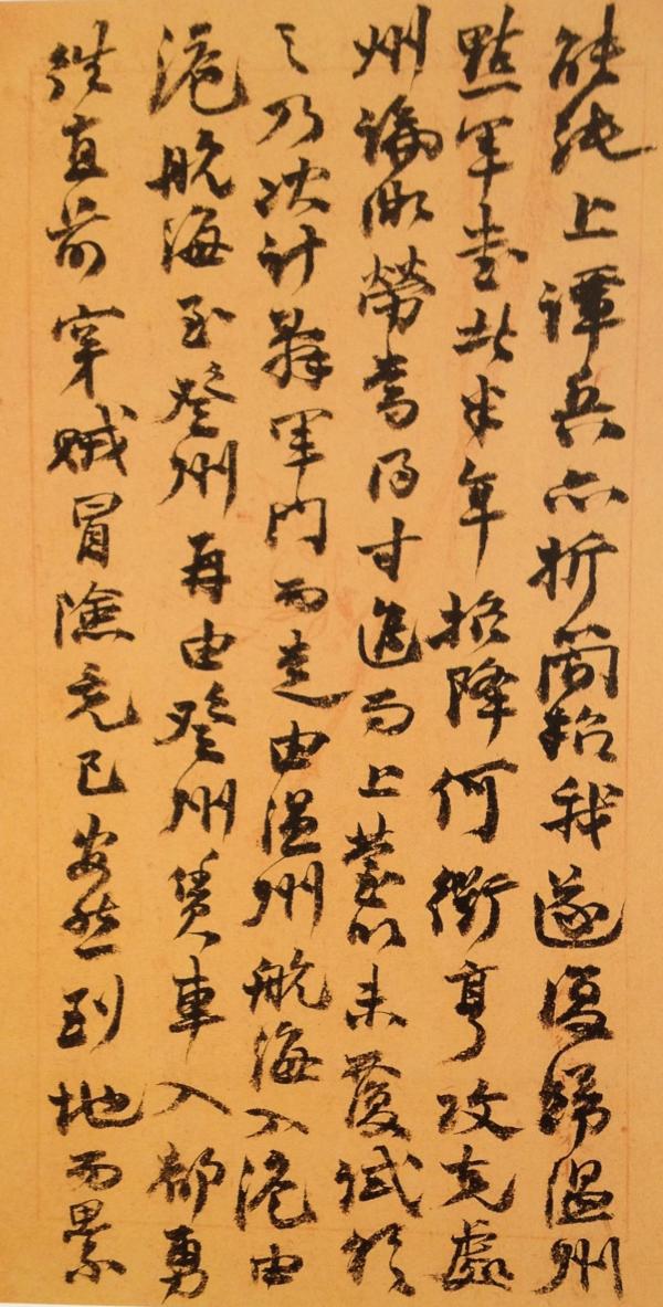 释文:金华先陷,截留于外,秋间则平阳民变,守城四十日始解瑞围。比入郡而绍已弃,进退皆绝,因趁夸船入闽,将赴都门,旅橐空如,戚友恐惧,遂留闽中。正欲穷死,而秦啸山军门督师援温州,永嘉令陈君子馀为谦昆弟交,弛书劝归,军门闻其