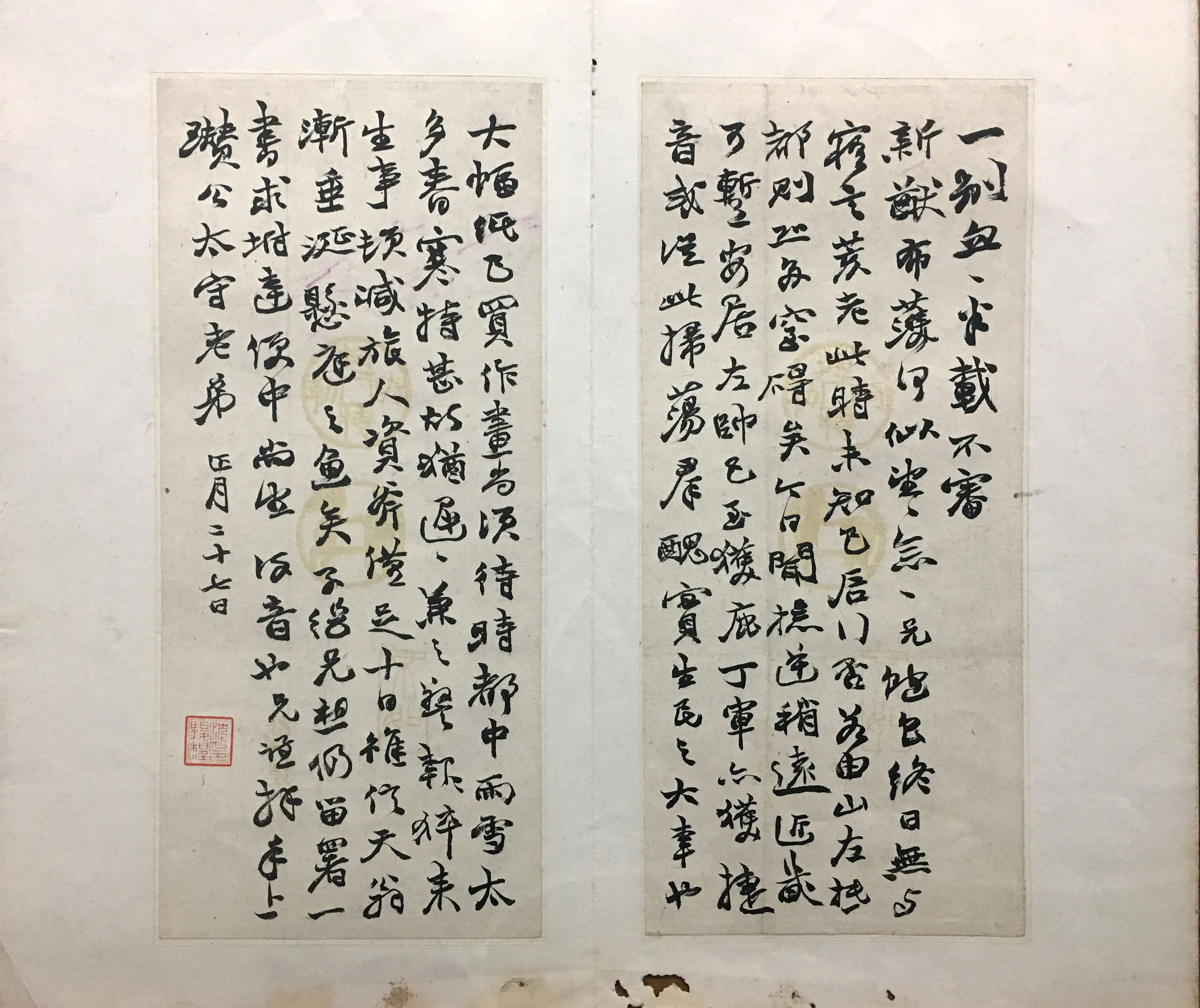 释文:一别匆匆半载.不审新猷布□何似望念望念。兄饱食终日,无与寝