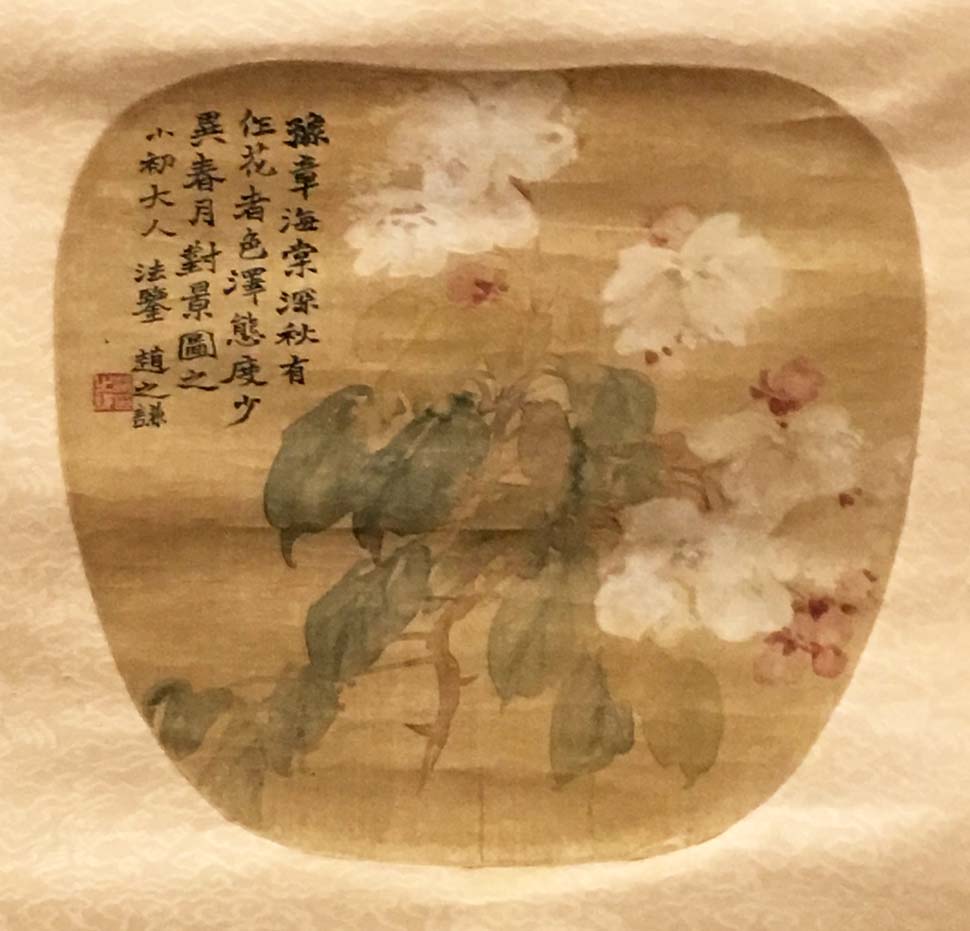 赵之谦《书画扇面合景轴——折枝海棠扇面》绢本 直径23cm 浙江省博物馆藏
