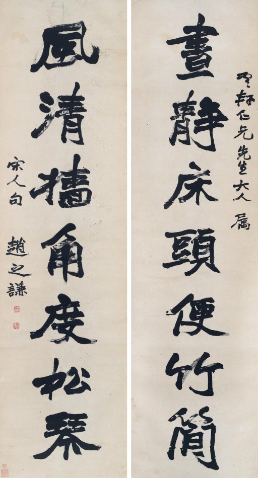 赵之谦《行书昼静风清七言联 》 170×45.5cm×2 广东崇正2014秋拍