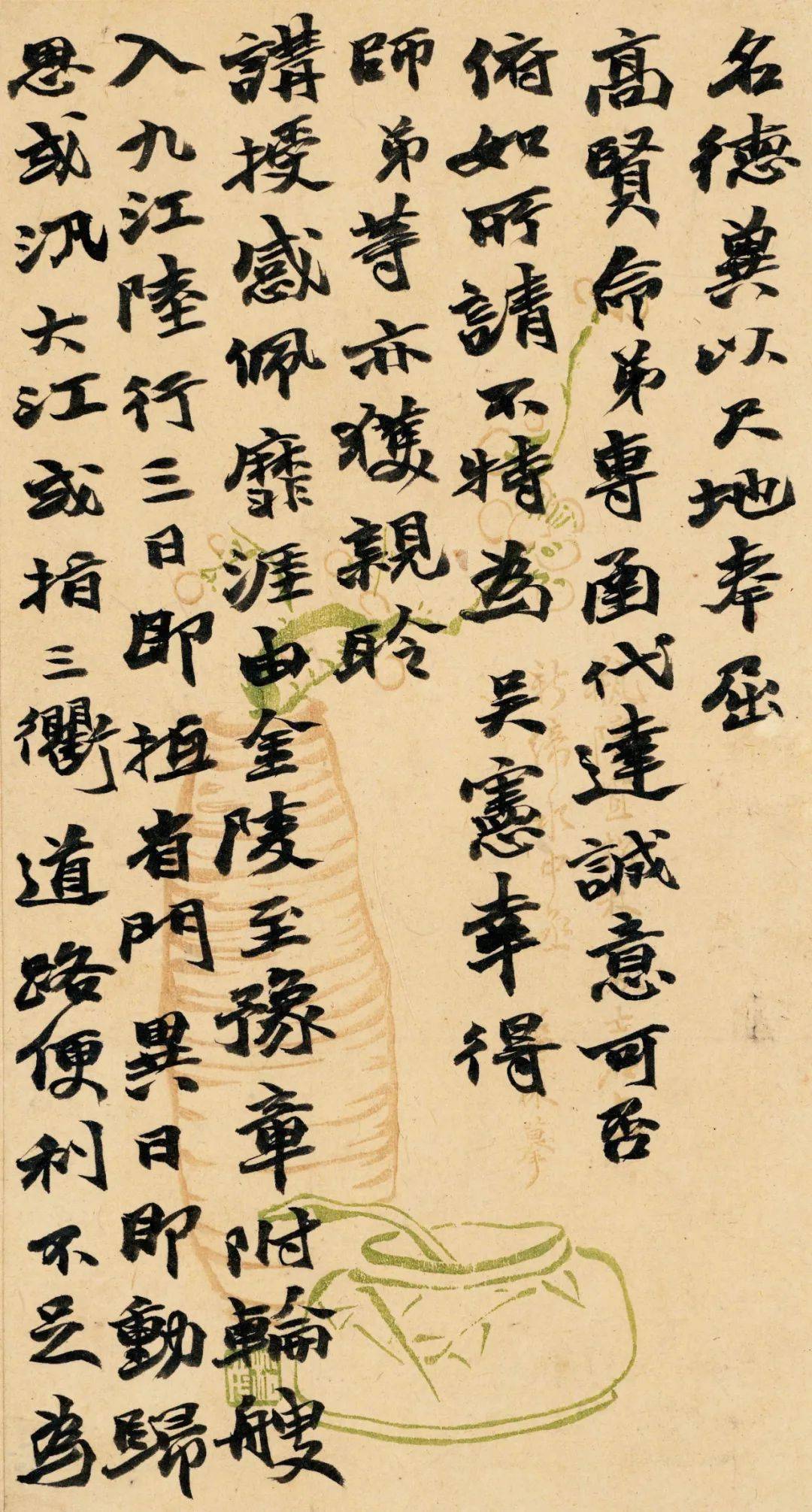 很多文章据此都认为赵之谦在生活中是苦痛且压抑的。但事实真这样吗?在上海图书馆中收藏的赵之谦信札中,我们看到了一个不一样的赵之谦。那还是咸丰十一年(1861年),赵之谦独自在温州谋生,留妻子在绍兴,当时浙地兵乱,他自己日子就很不好过,依然写信安慰认识没多久但非常投机的朋友江湜。
