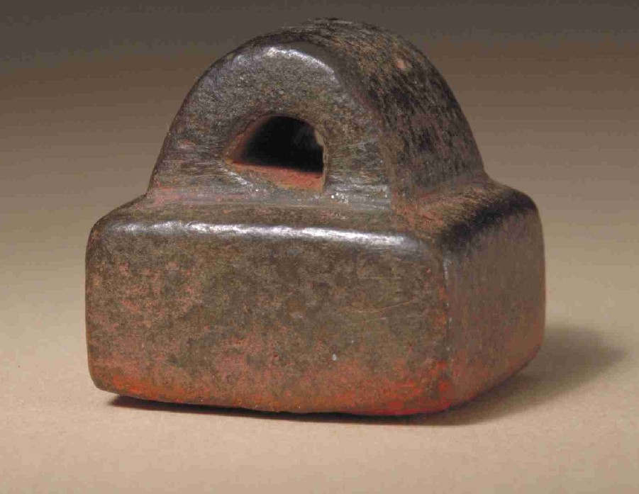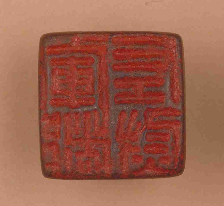 印铜铸,方形,鼻纽。印文为汉篆字体,白文,两竖行排列,右上起顺读“军都左尉”四字。