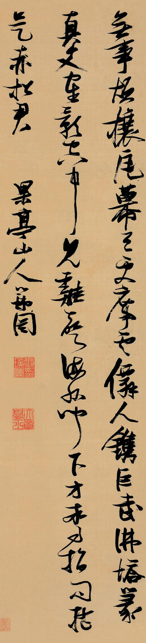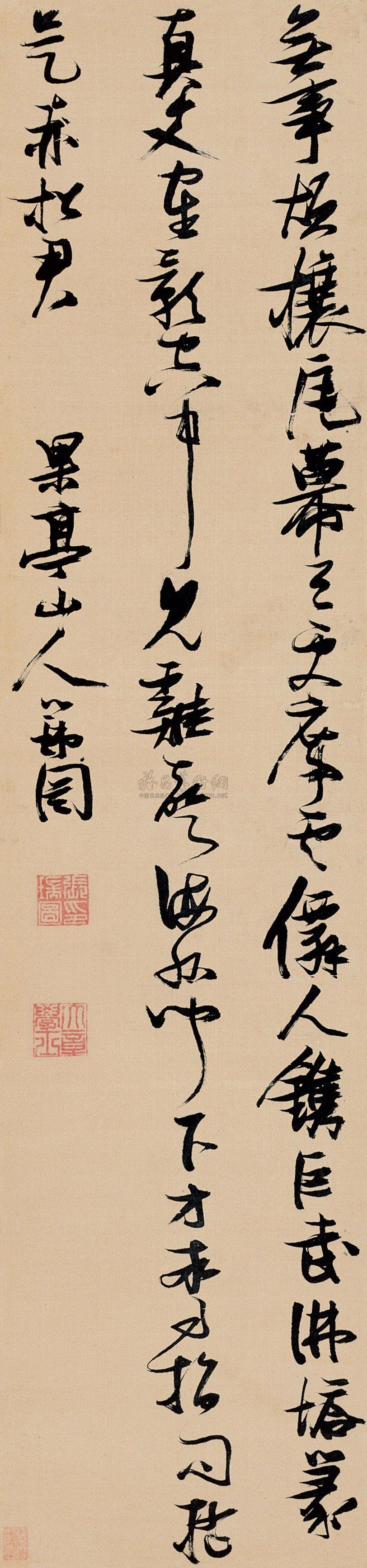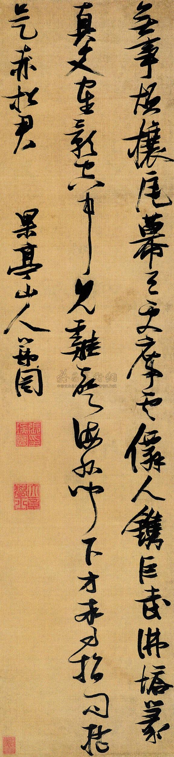 张瑞图《草书诗轴》 绢本 192×44.5cm 上海朵云轩旧藏。中贸圣佳09拍