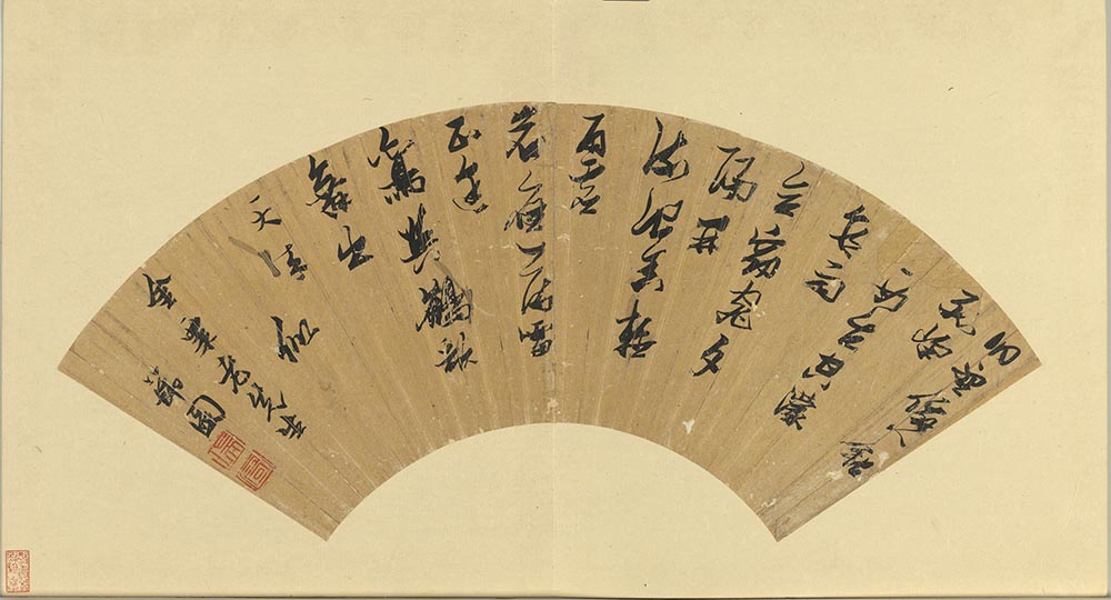 张瑞图《草书沈佺期岳馆五言诗》扇面 16.7 x51.8cm 台北故宫博物院藏