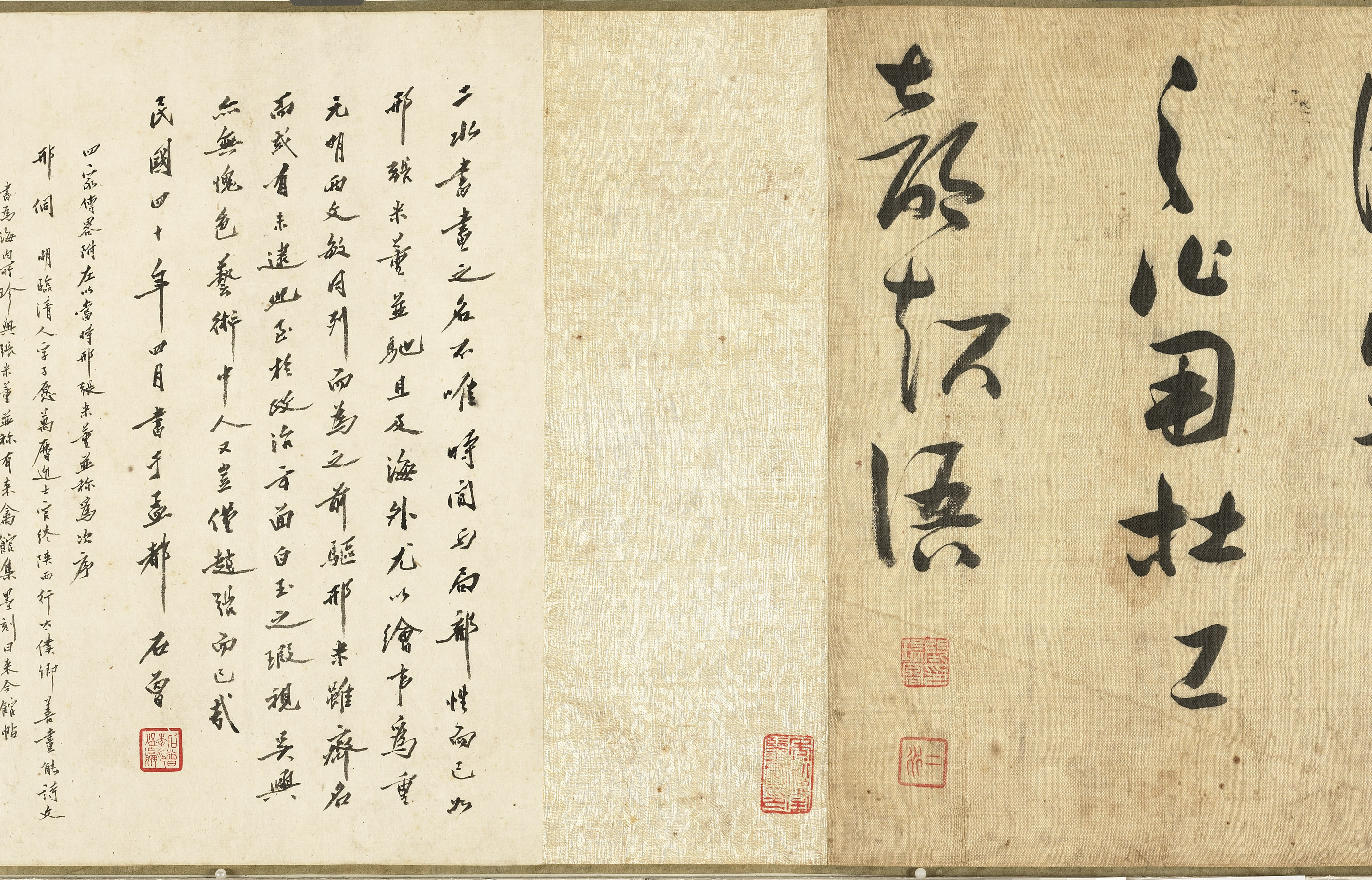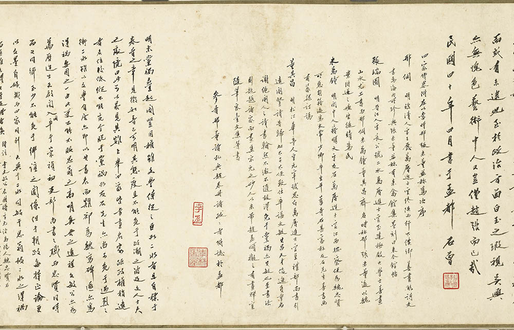 本件为李石曾先生所遗赠,由於是长卷形式,手卷横长的特性,益能展现出张氏活泼跳荡的书风。