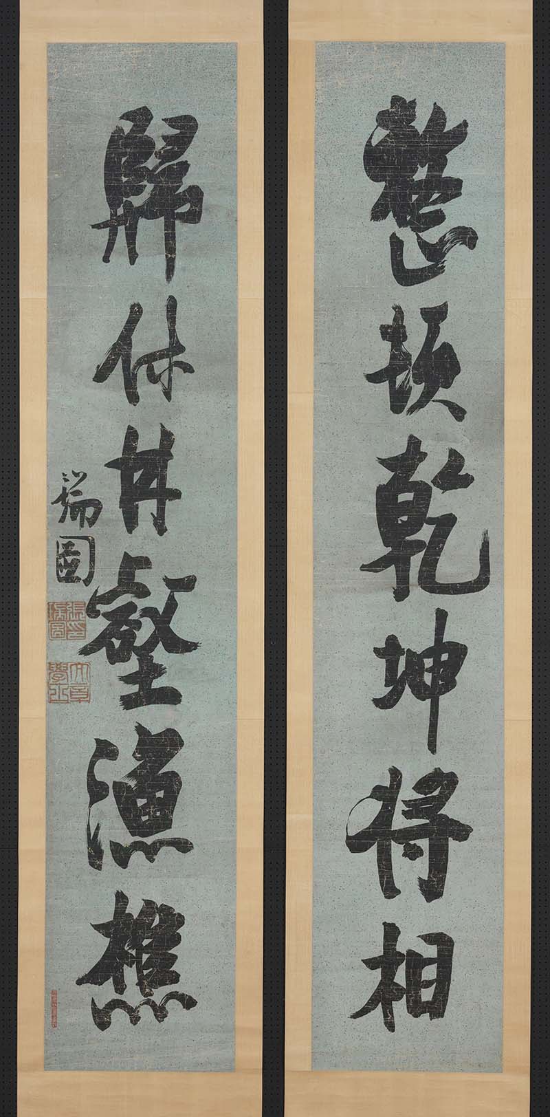 张瑞图《行书整顿归休六言联》纸本行书 165.2x30.6cm×2 台北故宫博物院藏