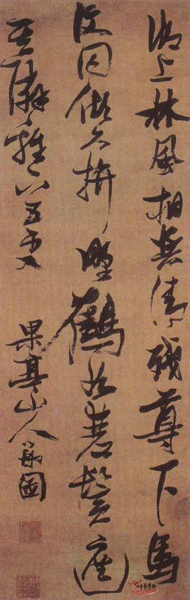 行草诗轴 绢本 纵170厘米、横55厘米。