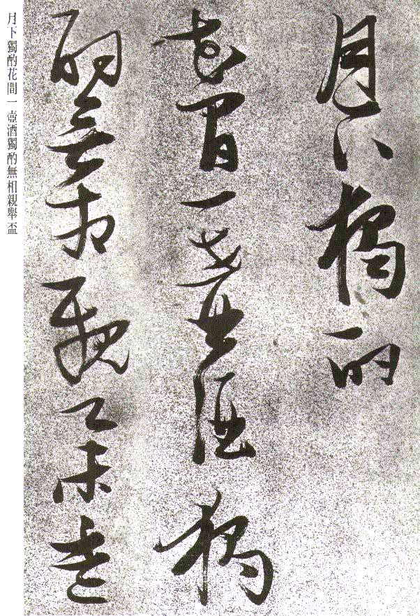 【释文】 花间一壶酒,独酌无相亲。 举杯邀明月,对影成三人。 月既不解饮,影徒随我身。 暂伴月将影,行乐须及春。 我歌月徘徊,我舞影零乱。 醒时同交欢,醉后各分散。 永结无情游,相期邈云汉。崇祯辛末书于白毫庵中 果亭山人 瑞图。