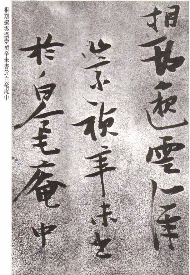 这是张瑞图传世的草书名作。在章法上缩小了字距,字与字牵连映带,上下连贯,同时,又拉开了行与行的距离,使得行间留下长条的空白,连贯流动的墨线与疏朗清晰的空白,形成强烈的对比,使得实处更黑,虚处更白,布白上极有意味,字的结构用力劲健,加上有折无转的笔势,一意横撑,显得奇绝剽悍,字里字外充满张力。用笔矫健翻飞,结体折拗疏宕。