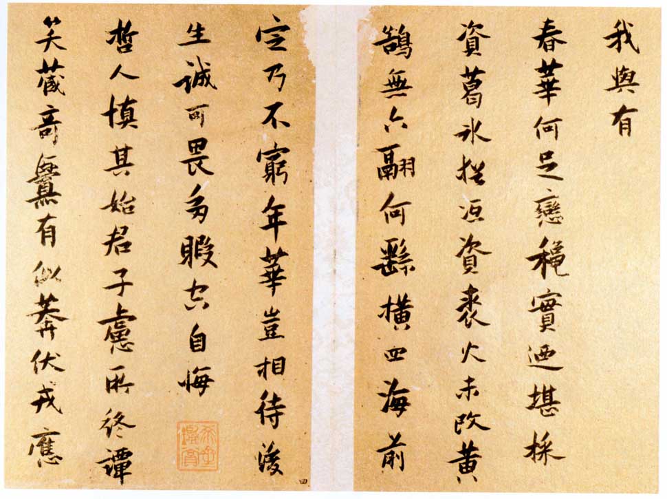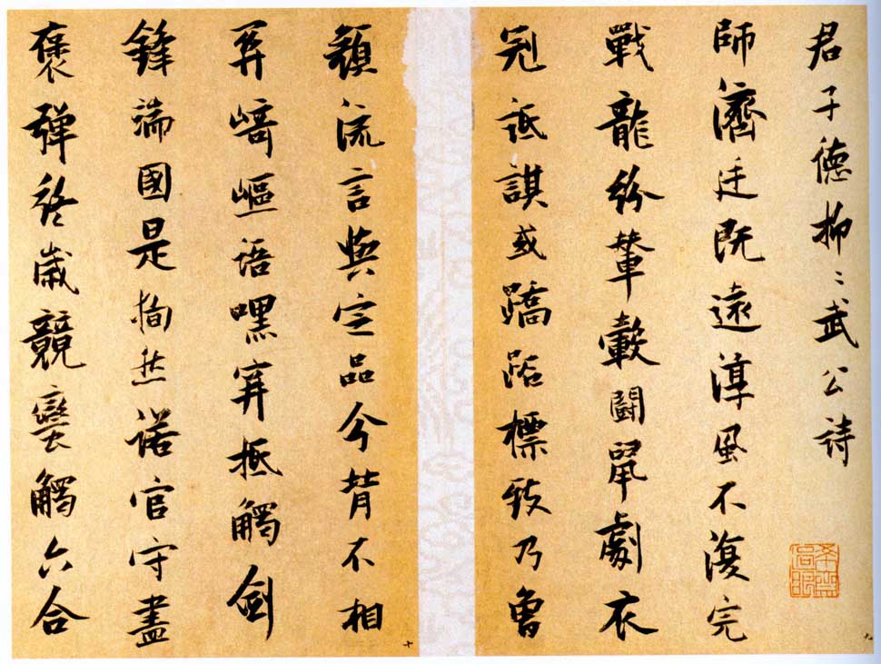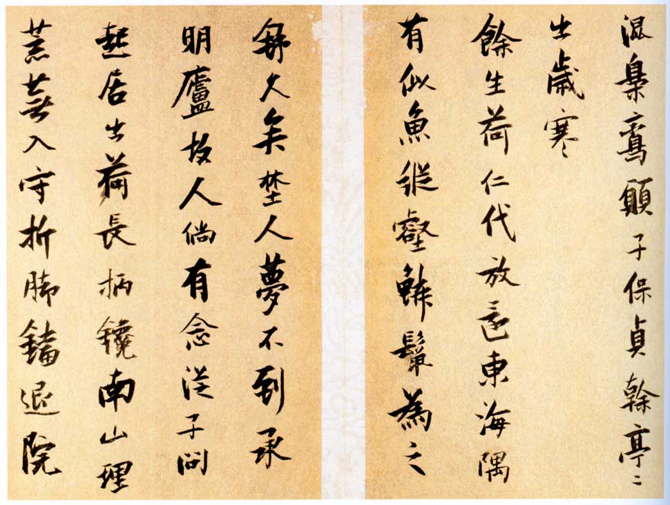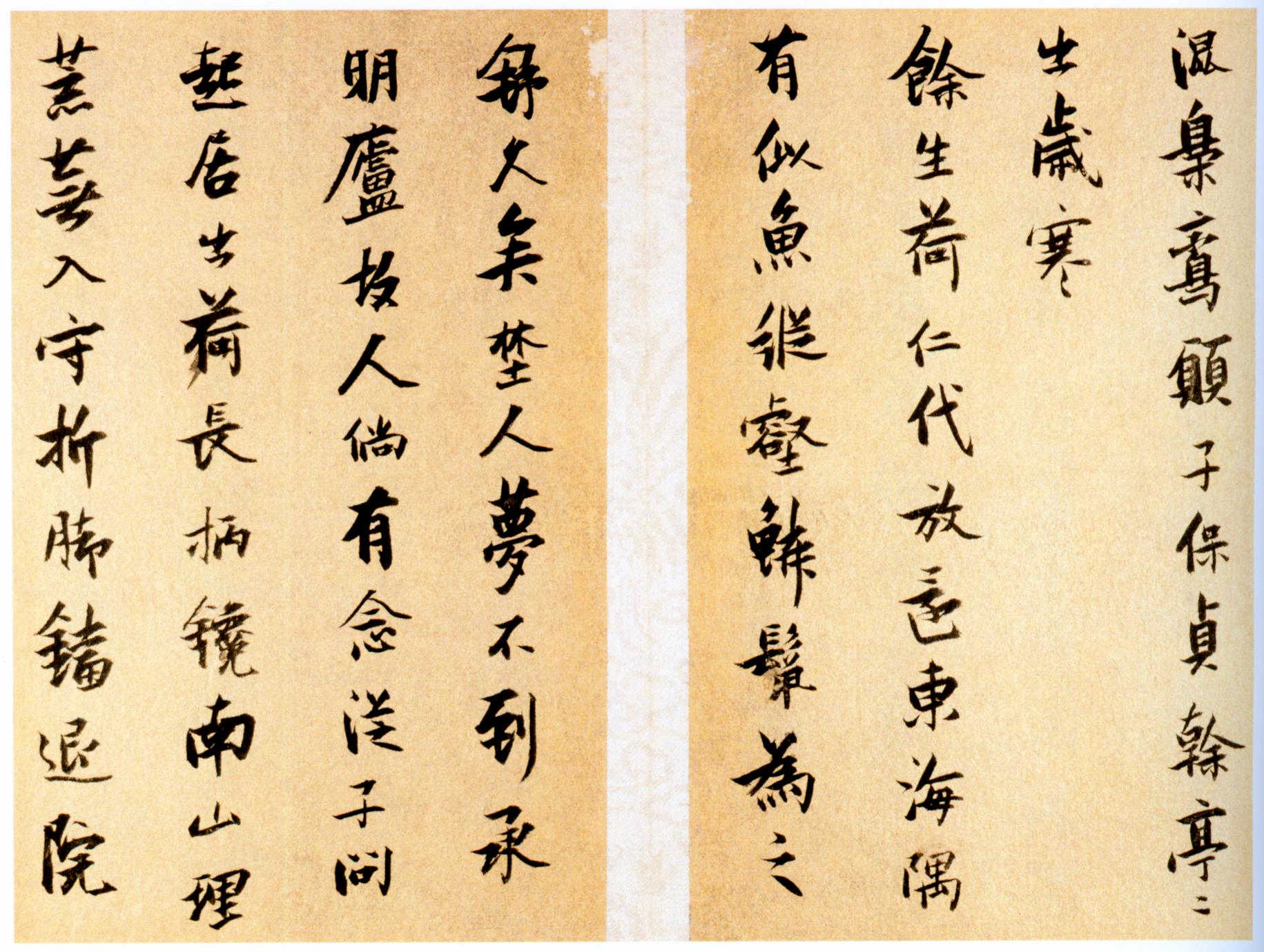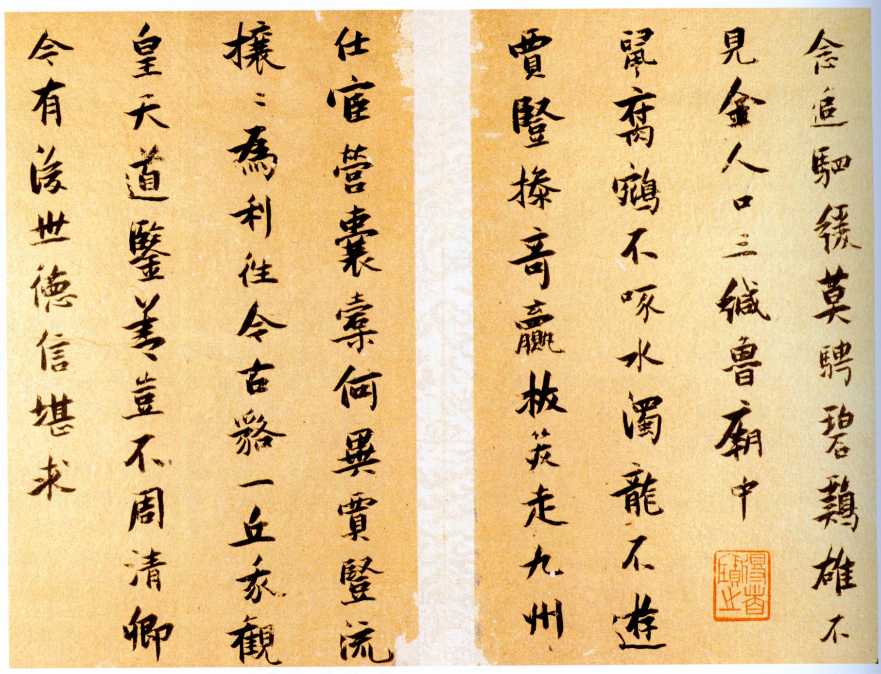 张瑞图《送康侯杨外孙北上七篇》册 金笺 行楷书 册页 每开20.4×13cm 崇祯十一年(1638)北京故宫博物院藏